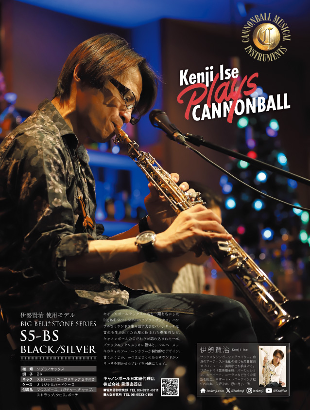 【伊勢賢治さん使用モデル】キャノンボールサックスの名を一躍有名にしたBig Bell Stone Seriesのソプラノサックス。パワフルなサウンドを生み出す大きなベル、リッチな音色を生み出すため埋め込まれた準宝石など、キャノンボールのこだわりが詰め込まれた一本。ブラックニッケルメッキの管体と、シルバーメッキのキィのツートーンカラーが個性的なデザイン。甘くふくよか、かつまとまりのあるサウンドがメリハリを利かせたプレイを可能にします。